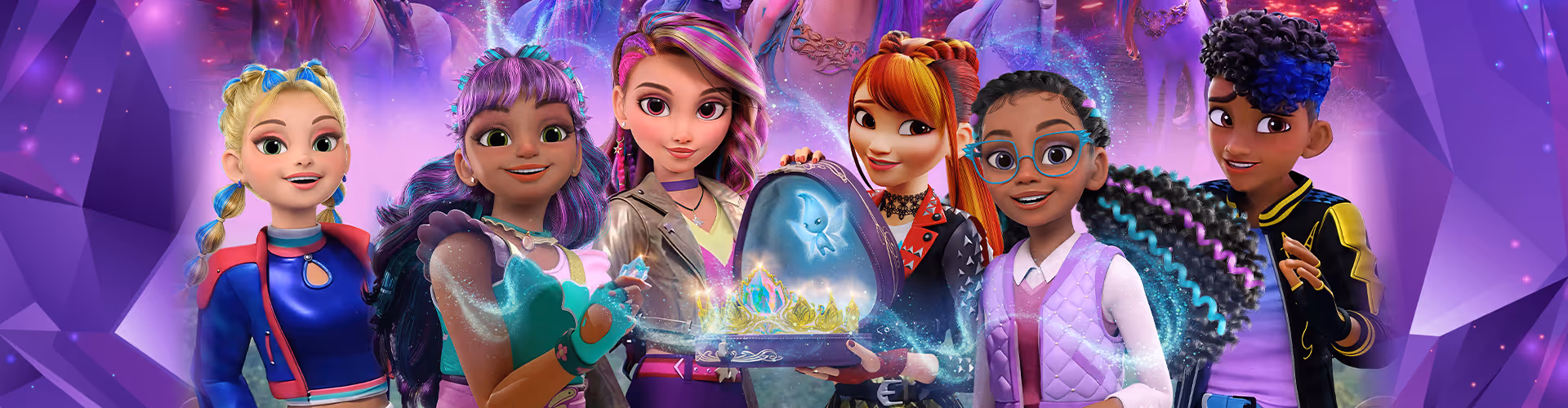 Sophia, Wildstar, and their friends are back for their biggest adventure yet as secrets unfold across Unicorn Island. With Grimoria and Ravenzella rising again, the Sapphires must unlock powerful fairy gemstones and protect the academy from new threats. Saddle up for a magical journey of friendship, discovery, and unforgettable surprises. Unicorn Academy: Secrets Revealed, now streaming on Netflix!